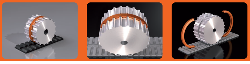 - 정밀한 맞물림: 특수 설계된 가이드 링이 치형 벨트와 정확히 맞물려, 벨트가 흔들림 없이 안정적으로 구동됨.