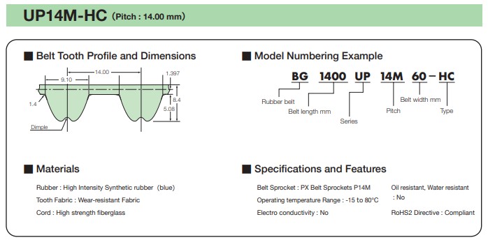쯔바키모토(Tsubakimoto) Ultra PX Belt-HC는 기존 PX 벨트 대비 2배 이상의 동력 전달 능력, 고정밀·고내구성·저소음·청정 구동을 제공하는 차세대 동기식 벨트입니다.